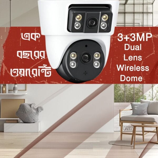 ANS: হ্যাঁ,ক্যামেরাটিত ৩+৩ মেগাপিক্সেলের দুটি লেন্স রয়েছে। একটি লেন্স ফিক্সড থাকবে এবং অন্যটি আপনার ইচ্ছামত ঘুরিয়ে মনিটরিং করতে পারবেন। Q:অন্ধকারে ক্যামেরা কাজ করবে কি?